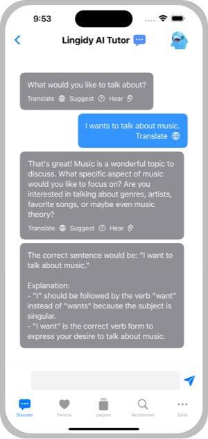 AI Tutor will respond in the language you are trying to learn, but if you donât understand, you can tap on Translate.